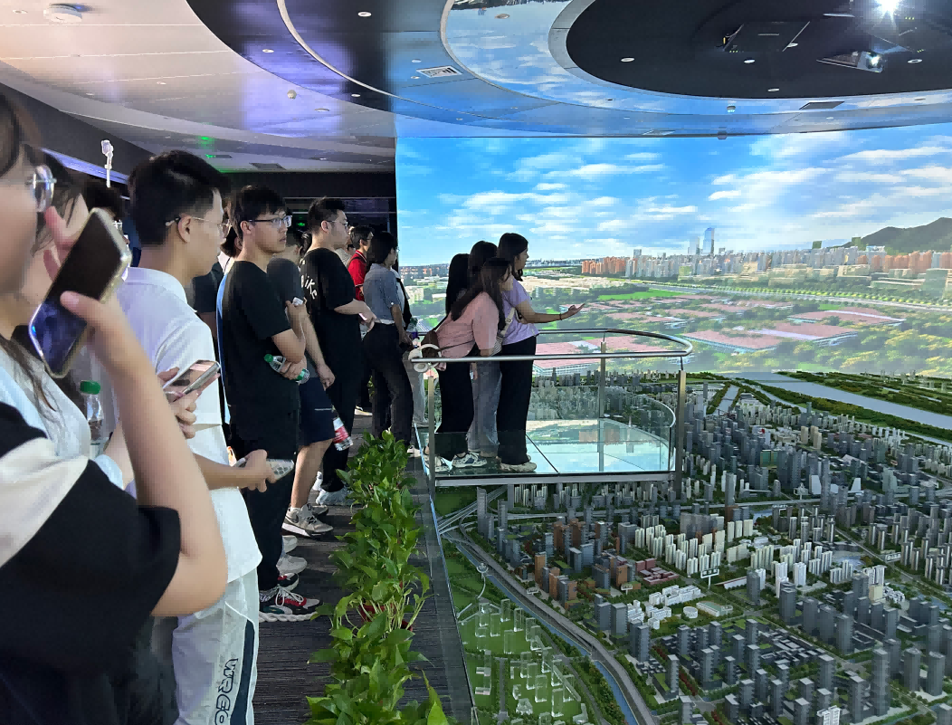 园区内现代建筑群错落有致,每一砖一瓦都蕴含着创新和科技的基因。艾弗森贝博ballbet官网科技IT菁英暑期实训营的学员们怀揣着对科技的无限憧憬步入研创园展厅。展厅内部设计充满科技感,一块块巨大的模型和显示屏映入眼帘,生动展现了研创园的科技规划,以及从梦想走向现实的开展历程。